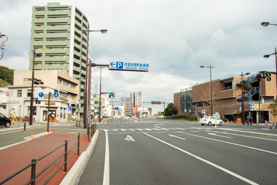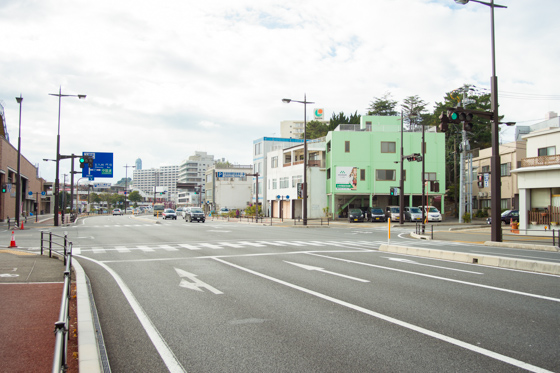 2.下関駅方面から国道9号線を進み、こちらの交差点を左折してください。