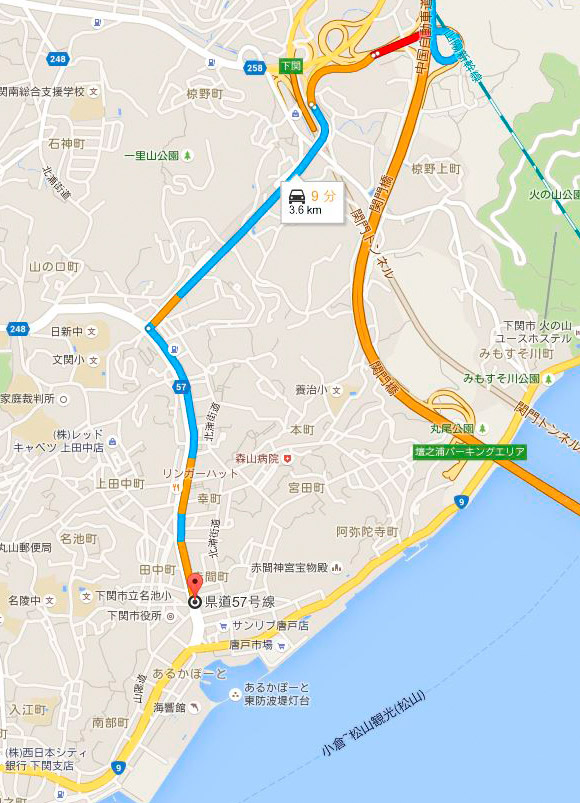 中国自動車道 下関エリアから県道57号線を唐戸方面に進んで、